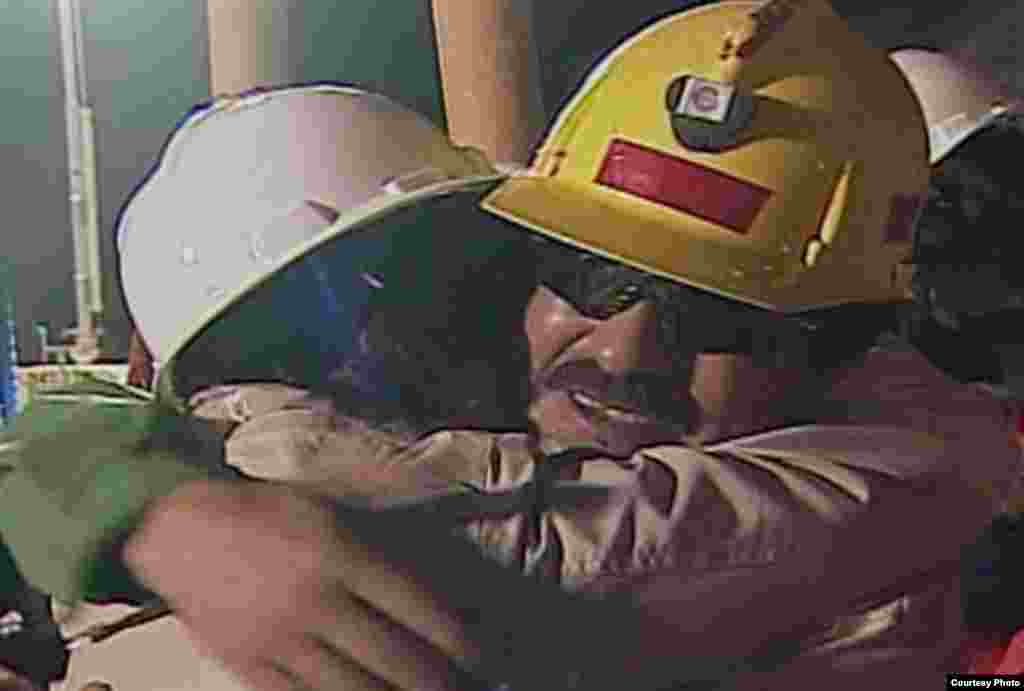 نخستين معدنچی نيمه شب سه شنبه – به وقت شيلی به سطح زمين رسيد. رئيس جمهوری شيلی در کنار خانواده اين معدنچی در سطح زمين به وی خوش آمد گفت.