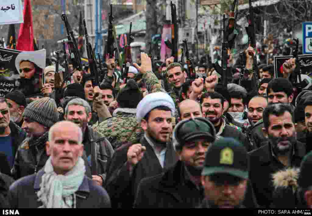 در عرف جمهوری اسلامی ایران بهطورمعمول تجمعات اعتراضی همسو با حاکمیت جمهوری اسلامی ایران نیز با سلاح برگزار نمیشود.