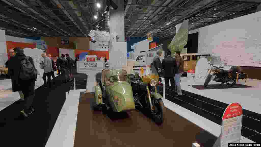 نمایشگاه پاریس یکی از قدیمی‌ترین نمایشگاه‌های خودرو جهان است. در این نمایشگاه امسال خودروهای کلاسیک و تاریخی با پس‌زمینه ماجراجویی به نمایش درآمده بودند. برخی از خودروسازان بزرگ مانند رنو یا پورشه هم در غرفه‌های خود، خودورهای تاریخی را به نمایش گذاشته بودند در غرفه رنو خودرویی به نمایش درآمده بود که گویا بسیار شبیه اولین خودرویی است که توسط مظفرالدین شاه به ایران آورده شده است.