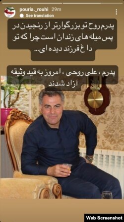 پوریا روحی، برادر حمیدرضا روحی از کشتهشدگان اعتراضات اخیر ایران، خبر داد که پدرش چند روز پس از بازداشت به دست نیروهای امنیتی جمهوری اسلامی آزاد شده است.