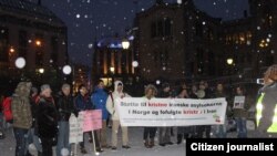 مسيحيان ايرانی مقیم نروژ، روز شنبه هفتم بهمن، به منظور حمايت از مسيحيان زندانی در ايران و نیز پناهجويان ايرانی مسيحی، در ميدان اِدسوُل اسلو، پايتخت نروژ گرد هم آمدند.