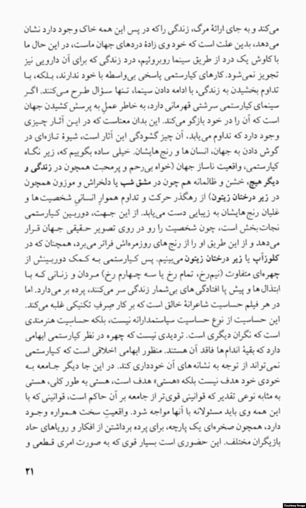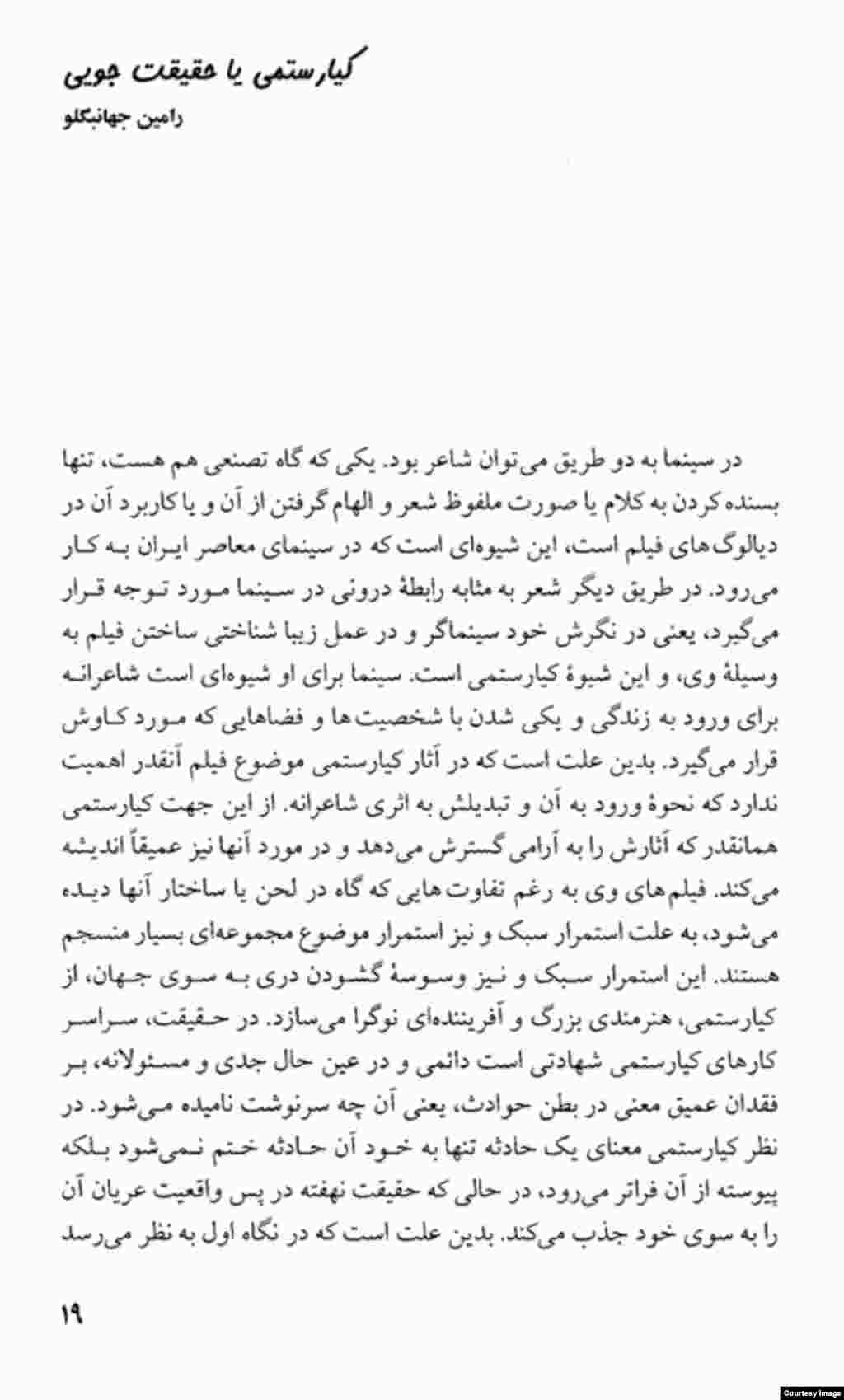 کیارستمی یا حقیقتجویی،رامین جهانبگلو، استاد فلسفه،نوشته ای را در مورد آثار عباس کیارستمی در اختیار رادیو فردا قرار داده است. این نوشته حدود دو دهه پیش در کتاب «مجموعه مقالات در نقد و معرفی اثار عباس کیارستمی» منتشر شده بود.