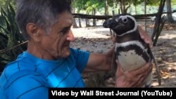 خوها پریرا دسوزا، این مرد ۷۱ سال برزیلی، پنگوین را تمییز میکند و به او غذا میدهد و این سرآغاز یک دوستی اعجابانگیز شد.