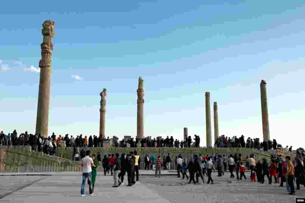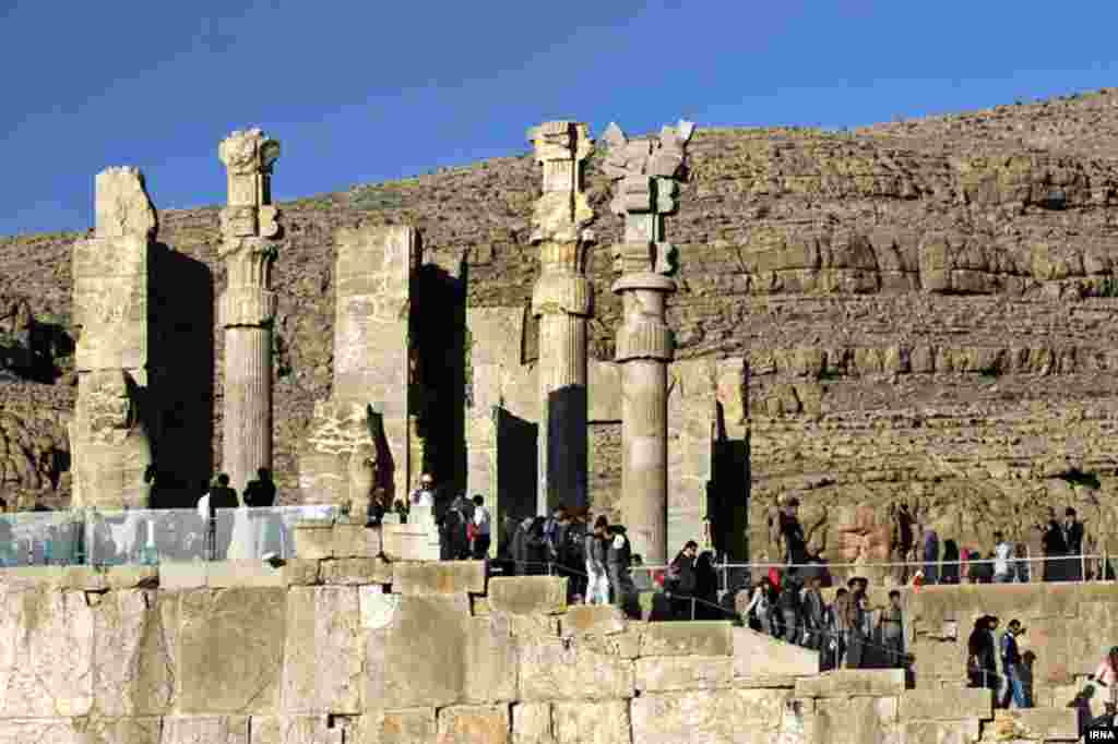 گزارش تصویری ایرنا از حضور مسافران نوروزی در تخت جمشید/ عکسها از رضا قادری