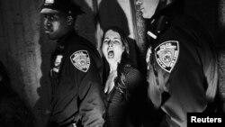 به گزارش خبرگزاری فرنسه در زیر یکی از عکسها که لحظه حمله ماموران پلیس نیویورک به تظاهرکنندگان را نشان میدهد، یکی از شعارهای تبلیغاتی اداره پلیس به شکل طعنهآمیزی دستکاری شده که متن آن این است :«اداره پلیس نیویورک با مردم ساکن شهر رابط بسیار خوب و نزدیکی دارد و به ضرب باتوم روح و قلب مردم را تسخیر میکند.»