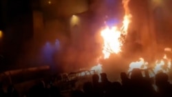در ویدئو کانکسی که به نظر میرسد از آنِ پلیس راهنمایی و رانندگی باشد در آتش میسوزد.