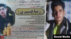 رضا قنبری ۱۷ ساله دیگر معترضی است که ۱۳ دیماه در کرمانشاه هدف گلوله قرار گرفت. پیکر این کارگر معترض هم در روستای جبارآباد سفلی به خاک سپرده شد.