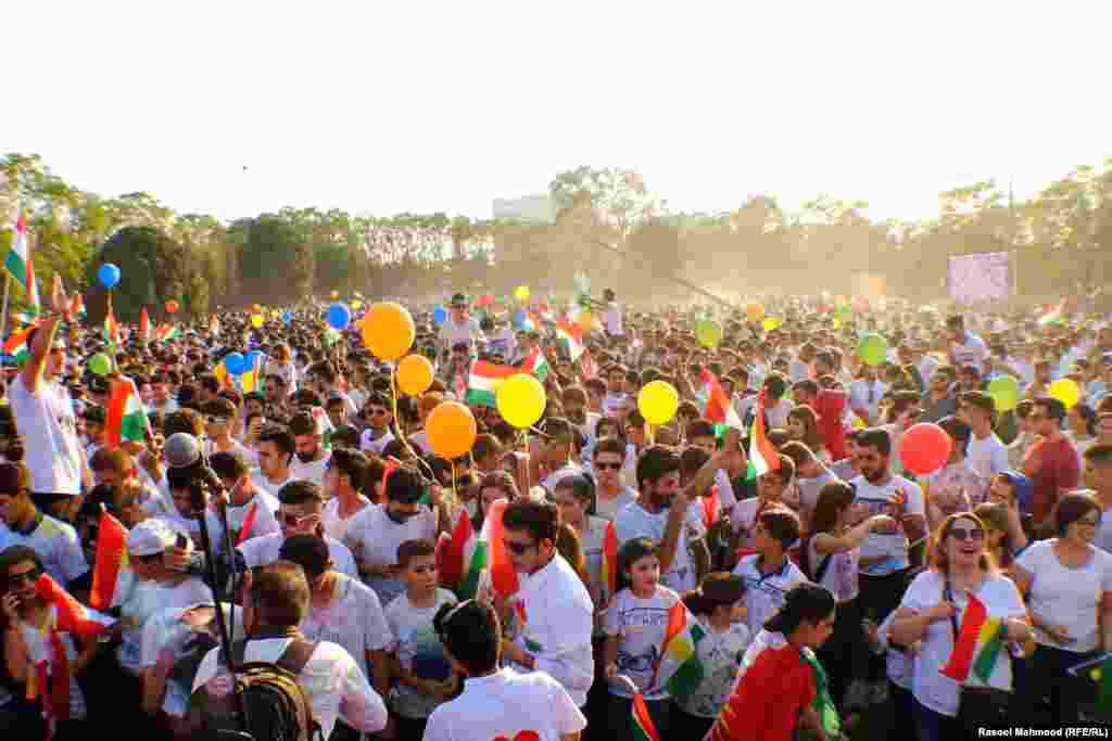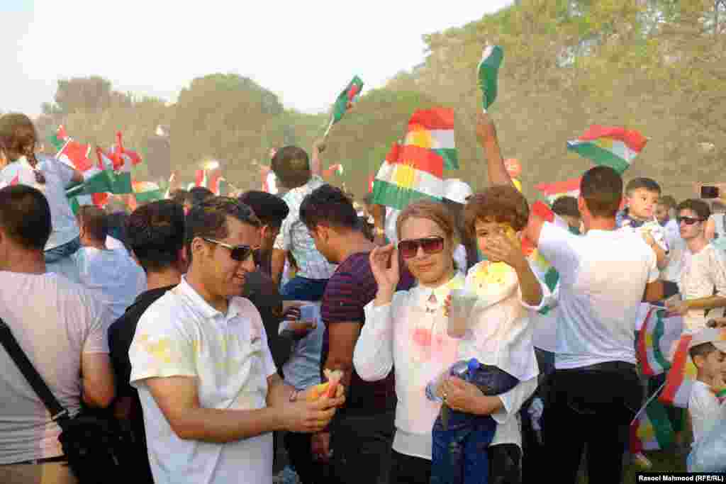 فستیوال رنگها در اربیل پایتخت اقلیم کردستان عراق، امسال رنگ و بوی سیاسی به خود گرفت. با توجه به اینکه مسعود بارزانی رئیس اقلیم کردستان عراق، سوم مهر را روز برگزاری همهپرسی استقلال اقلیم از عراق اعلام کرده، حاضران در فستیوال که شنبه ۲۵ شهریور در پارک سامی عبدالرحمن برگزار شد، ضمن در دست داشتن پرچمهای کردستان، شعارهایی با خواست استقلال سر دادند.