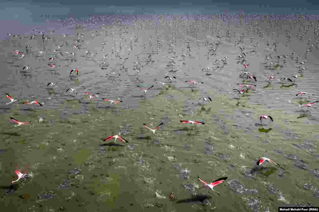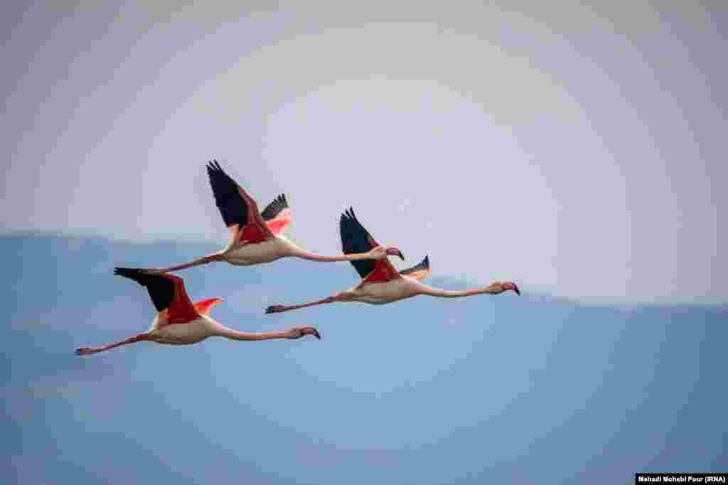 فلامینگوها پرجمعیتترین پرندگان مهاجر زمستانی در مازندران هستند که هر سال پس از طی مسافت طولانی از عرض شمالی به تالاب بینالمللی میانکاله میرسند. جمعیت فلامینگوها در هر دور مهاجرت بین ۷۰ تا ۸۰ هزار بال است که وارد تالاب میانکاله و دیگر تالابهای منطقه و آببندانها میشوند و تا بهار سال بعد مهمان ایران هستند. تالاب میانکاله بخشی از شبهجزیرهای به همین نام است و در جنوب شرقی دریای خزر قرار دارد. در سالهای گذشته گزارشهایی از تلفات گستردۀ پرندگان مهاجر در تالاب میانکاله گزارش شده بود، ازجمله بهمن ۱۳۹۸ که بیش از ۱۰ هزار پرنده تلف شدند و دلیل آن نوعی بیماری اعلام شد. (عکسها از مهدی محبیپور)